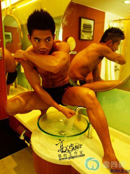 钻石体育生穿紧身裤野泳,太好看了