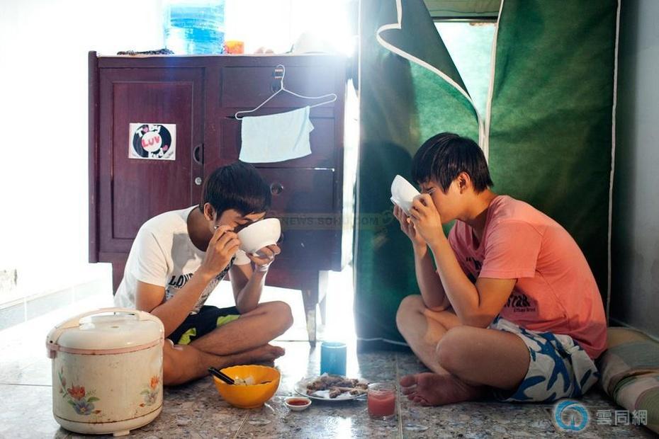 Vinh (19岁,学生)和Tho (20岁,业余厨师)一起享用他们的午餐。他们在一起3个月。