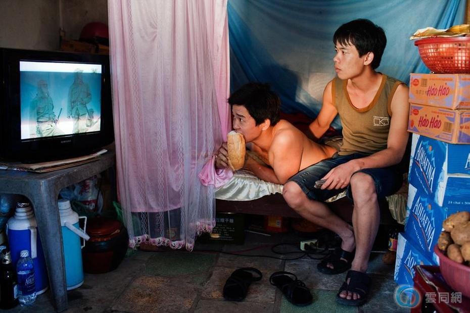 Thang (27岁,工人)和Dong (23岁,军人)早饭时一起看电视他们在一起2年了。