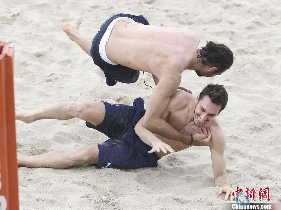 当地时间2013年6月17日,巴西里约热内卢,皮尔洛(Andrea Pirlo)领衔意大利众国脚在海滩上放松。
