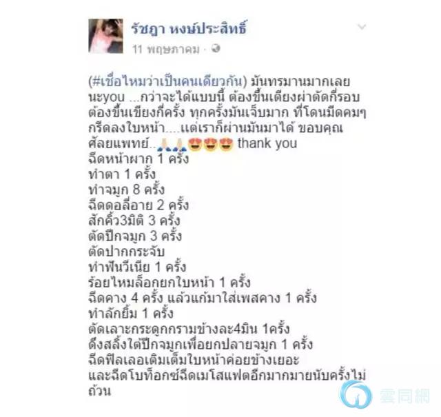 他总共花了30多万铢(约6万多人民币),经历了30个月的时间,大大小小的手术接近30次,平均下来差不多每个月都要做一次。