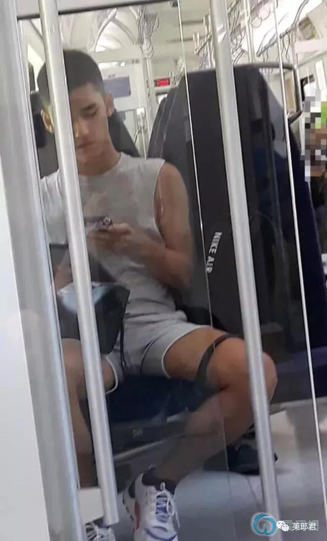 高铁上的大胸肌壮男穿超短裤,这粗壮的大腿亮了!