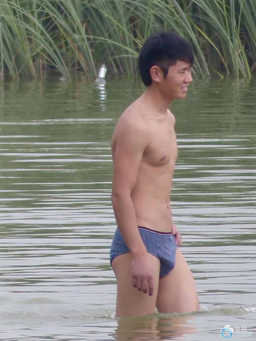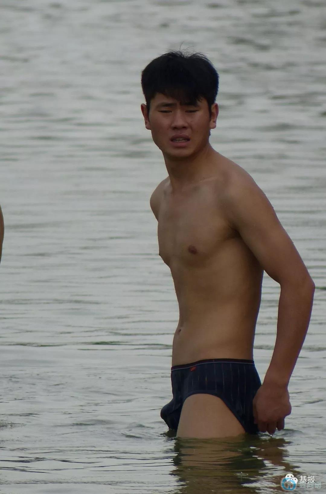 钻石体育生穿紧身裤野泳,太好看了