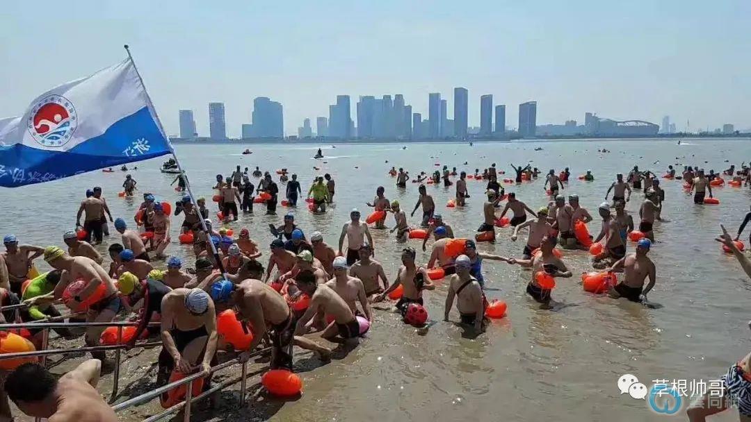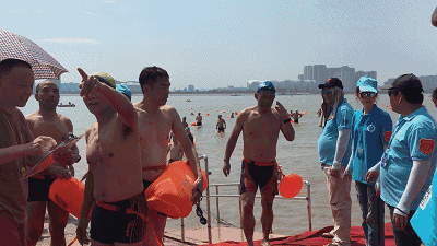 2022横渡钱塘江的肌肉男来了,大胸肌小泳裤太好看