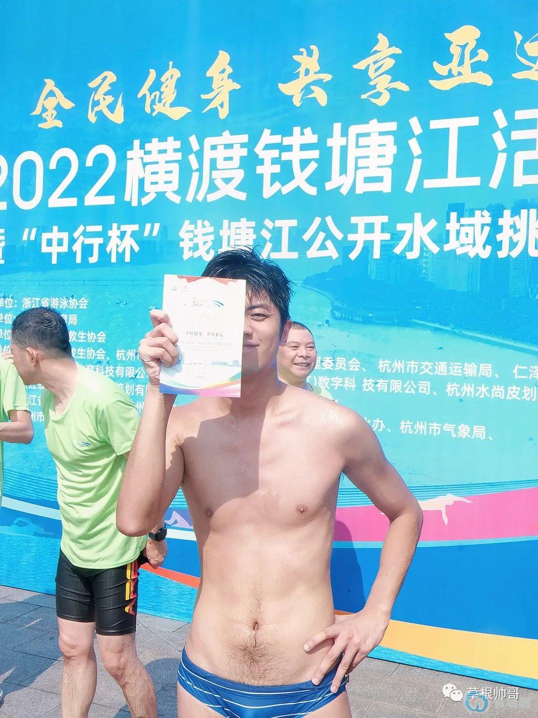 2022横渡钱塘江的肌肉男来了,大胸肌小泳裤太好看