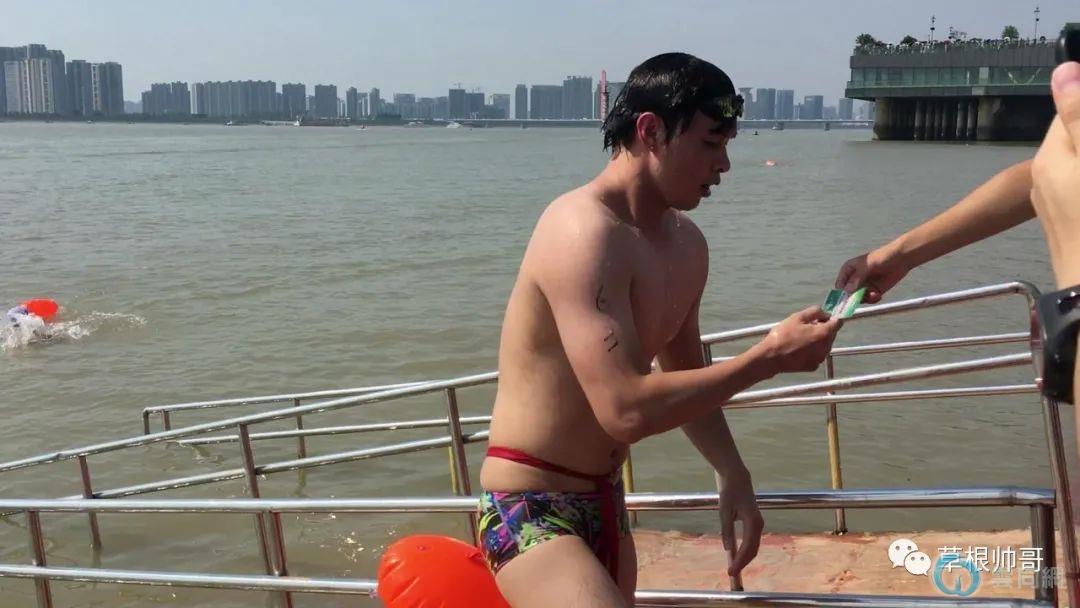 2022横渡钱塘江的肌肉男来了,大胸肌小泳裤太..