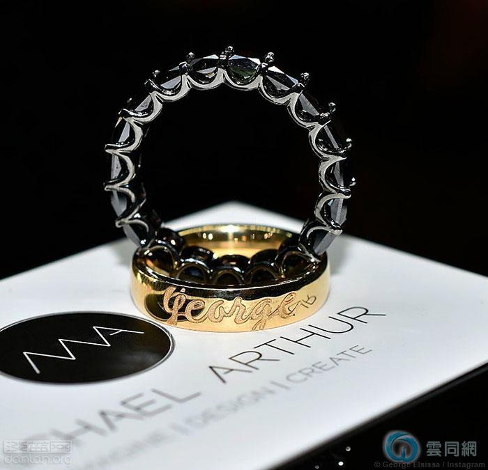 他们互赠一枚镶嵌9克拉黑钻石的戒指和一枚定制的黄金戒指