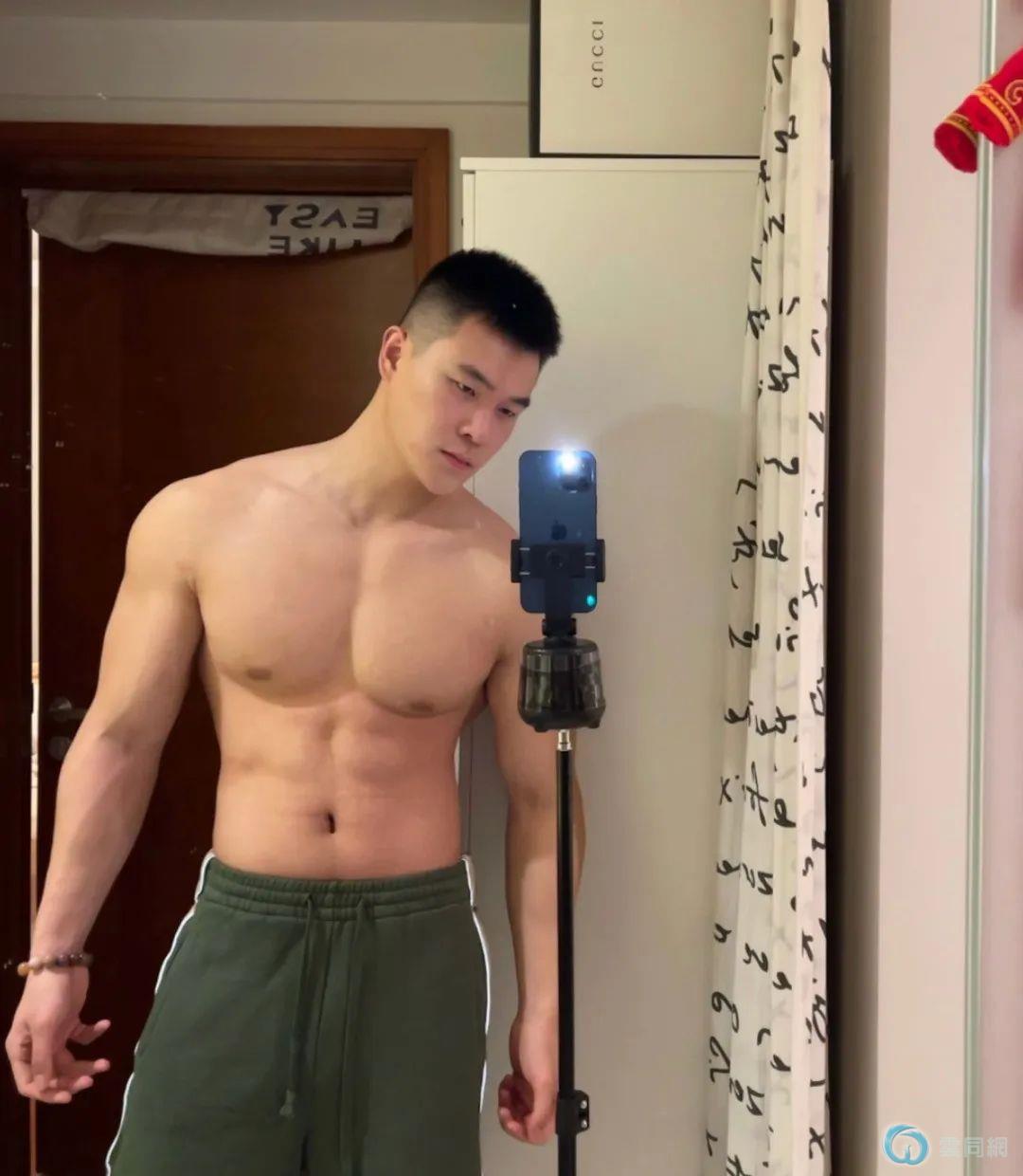 肉壮帅哥自拍照走红