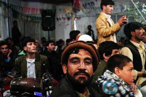 在一个舞会上,一名阿富汗男子骄傲地仰头看着镜头。一般来说,主人会给许多男孩提供大量昂贵的衣服甚至给车,因为这些主人想要以此显示他们的富有以及社会身份。但如果男童们拒绝表演或者没有按照主人说的去办,他们就会受到毒打。