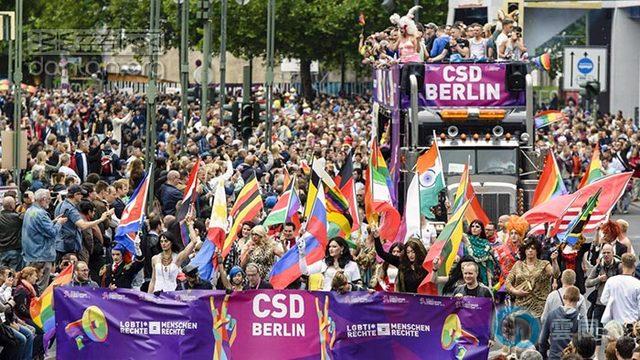 成千上万人21日在德国首都柏林参加同性恋骄傲大游行,欢庆世界各地在平等权利方面取得的进步,同时谴责将同性恋者定罪判刑或限制其权利的国家。