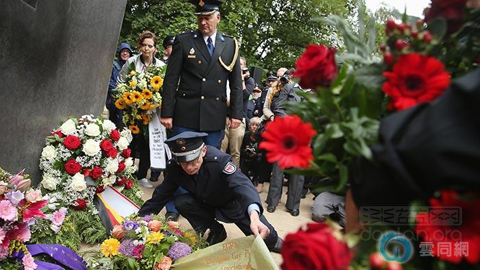 游行开始前,欧洲同性恋警察协会成员在柏林市中心附近的同性恋者纪念碑前献花默哀。这座纪念碑落成于2008年,用以纪念纳 -粹统治期间在监狱和集中 营里被迫害致 死的数万名同性恋人士。