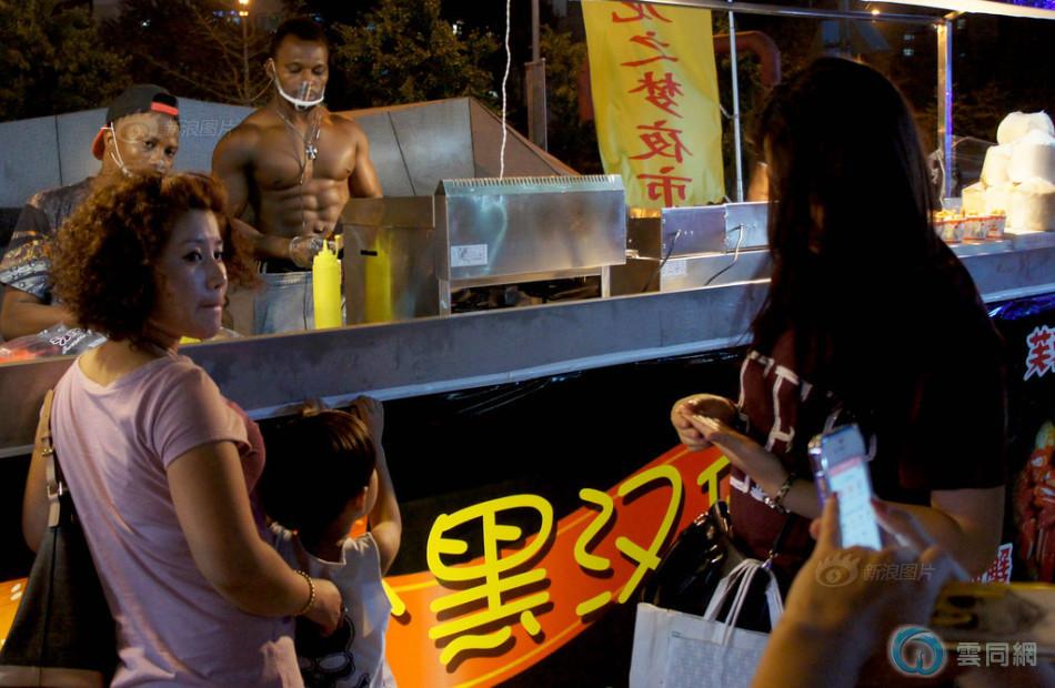 2014年07月29日,辽宁省沈阳市,在沈阳一夜市上,两个来自非洲的“小二黑”创办的小黑汉堡吸引大量女市民前来。