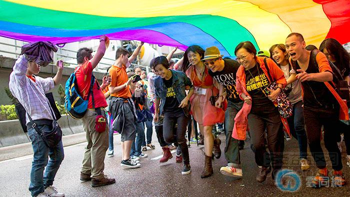 由香港女同盟会、香港彩虹、大同等权益组织发起的2014香港同志骄傲游行于11月8日下午举行,数千名参加者力撑平等权利,同志社交软件Blued组织的方队也在活动中亮相。