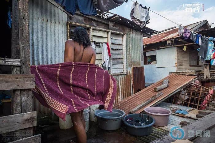 斯皮迪在村里洗澡。哈努阿巴达村的房子都没有通自来水,所有人都提着水桶洗澡。
