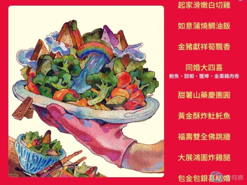 同婚宴采用传统的路边办桌模式,为的是让同性婚姻更贴近一般日常生活,菜色也选用传统的台式料理,并选用吉祥话语用以祝福,如代表长生的鱼等等。