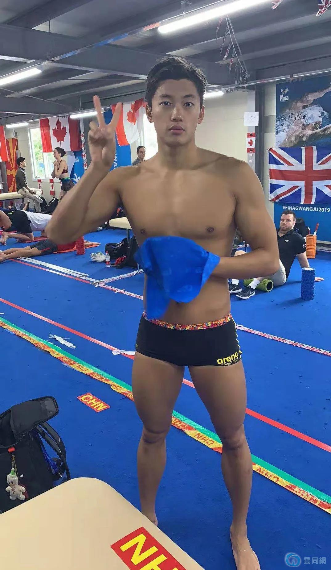 这条微博后面两张照片,网友发现原来游队平时训练泳裤已经有中国红款了。