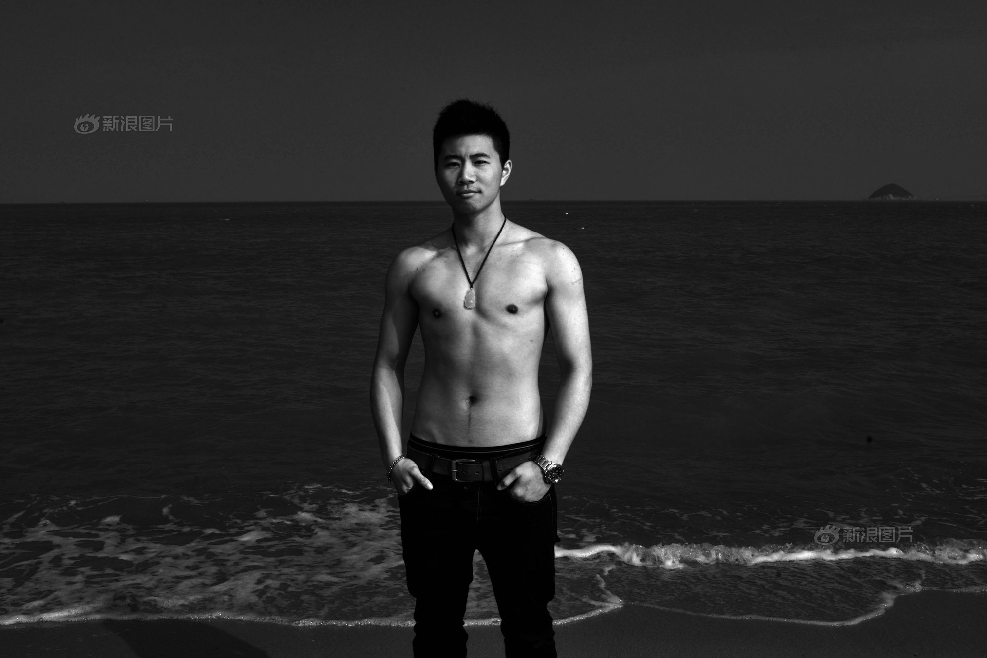 钻石体育生穿紧身裤野泳,太好看了