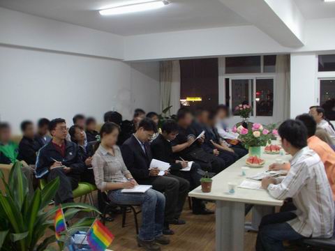 “我来到我们社区,看了后挺高兴。我数了三遍,我们这里有3位漂亮的姑娘,21位帅气的小伙。这些年轻人很阳光。”张北川跟大家讲了自己的一个经历。2002年中英项目与云南省健教所合作一项关于同性恋的调查,来了半年找不着人。他平时与20几位云南男同性恋者有联系,便告诉他们自己将到云南,如果愿意就和大家见见面,最后去了十几个。“现在大家能够主动地走出来,说明社会在进步。但更重要的是学会从我做起。”