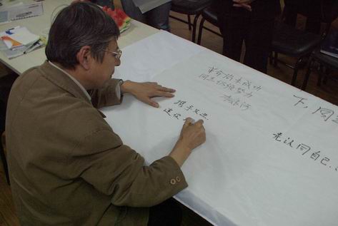 “今天的中国是没有英雄的时代。”张北川在自己的博客中也说到这一点,“从我做起,不要指望别人。大家要拧成一股绳,形成统一战线,包括政府。”说到这里,张北川转向坐在右面的闵向东,“政府已经伸出一双友好的手。我们要握住这些手,从国内到国际。”