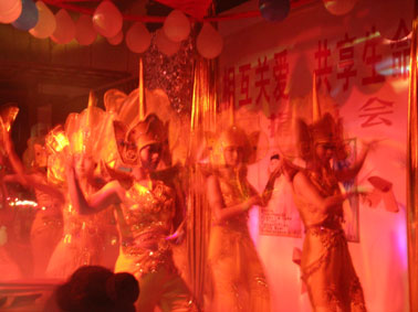 一首精彩的歌曲之后,晚会在昆明春雨同心工作组的成员精心编排的手语歌曲"感恩的心"中拉开序幕,伴着歌声我们回想起那些在死亡线上与病魔斗争的勇敢者,募捐活动由昆明市健康教育所所长杨佩军主持,是云南省性病/艾滋病协会王汝巽会长、昆明市防艾办胡为民主任也在晚会上发了言。他们强调:今天我们有这么多的组织和其他个人来关注感染者的事,我们很高兴,你们真正的是本着"以人为本"的思想在做事,我们只有认真的贯彻"遏止艾滋、履行承诺"才能打赢这场没有硝烟的战争,我们希望大家的共同努力一定会创造出一个美好的明天。