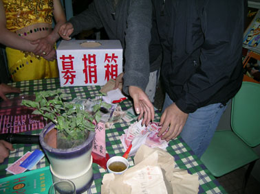 接着相关的组织和个人开始为患者进行了捐款,整个募捐晚会一直持续到11点结束,最后现场点验完毕封袋,共计为艾滋病患者募捐资金:7918元(其中承诺捐款2000元),并于2005年12月31日由昆明市健康教育所长杨佩军、昆明春雨同心工作组以及一直护理这位患者的志愿者一同,到传染病院当面转交感染者本人。