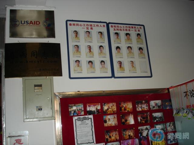 昆明市春雨同心工作组是成立于20055月,由美国家庭健康国际(FHI)和昆明市健康教育所支持下成立的同志社区组织,为昆明市男同人群提供应对男性性健康咨询和服务艾滋病的干预、检测、感染者的关怀、社区倡导、同志文化的构建,为营造多元、丰富、和谐的同志社区而成立的非盈利性组织。