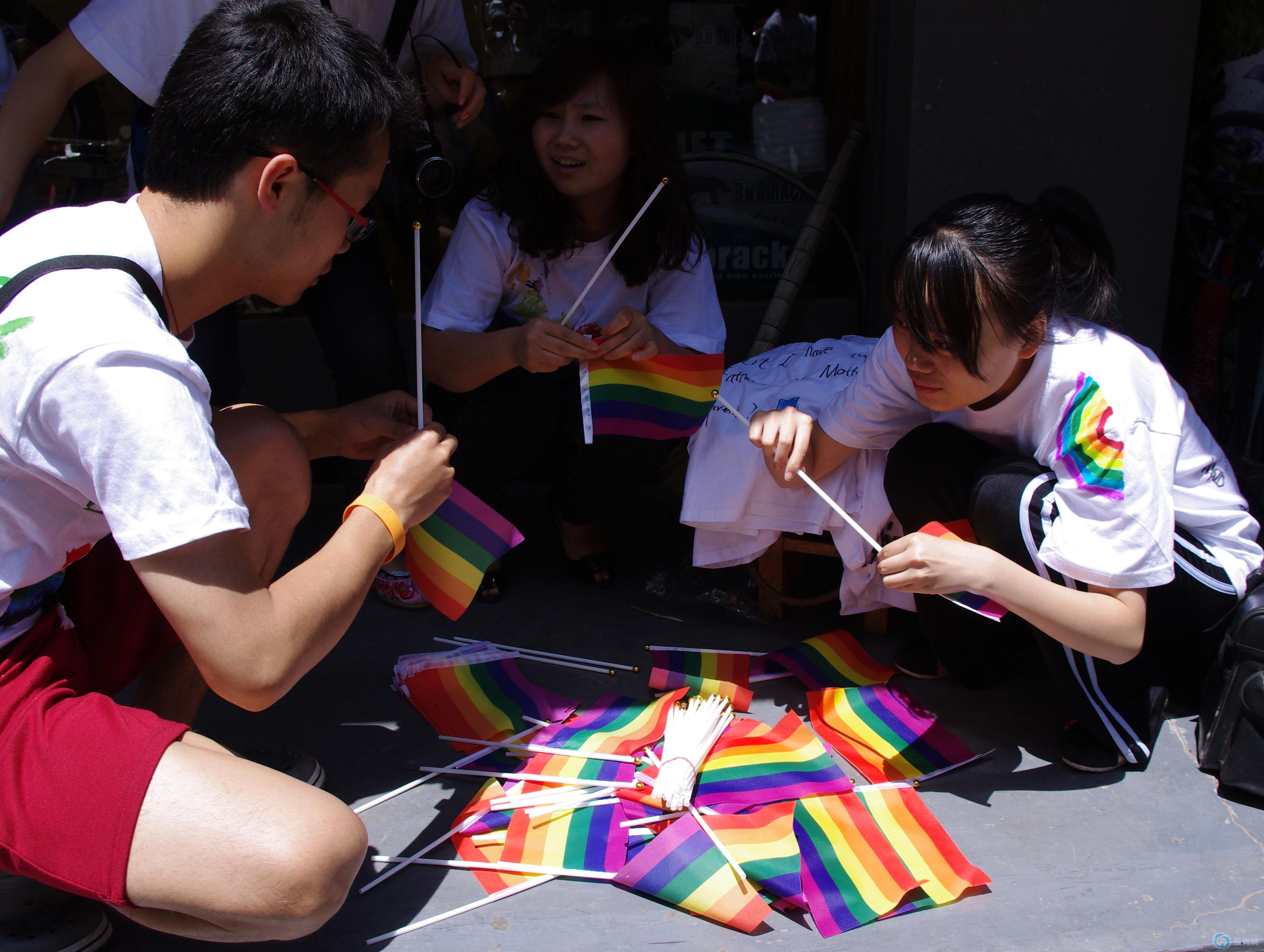 紧张进行彩虹旗组装的朋友们。↓