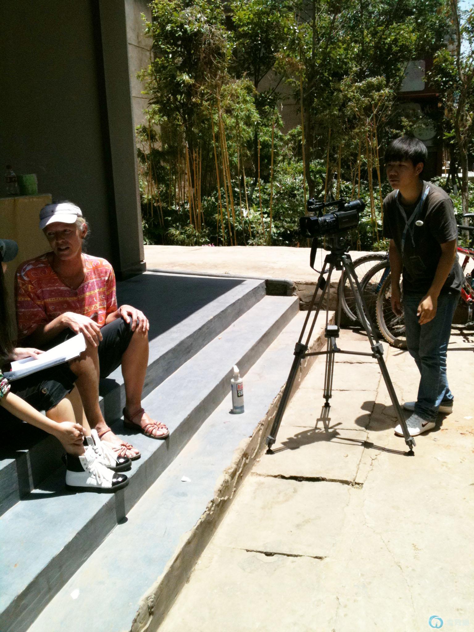 我们向中新社记者介绍活动,并接受对方的采访。↓