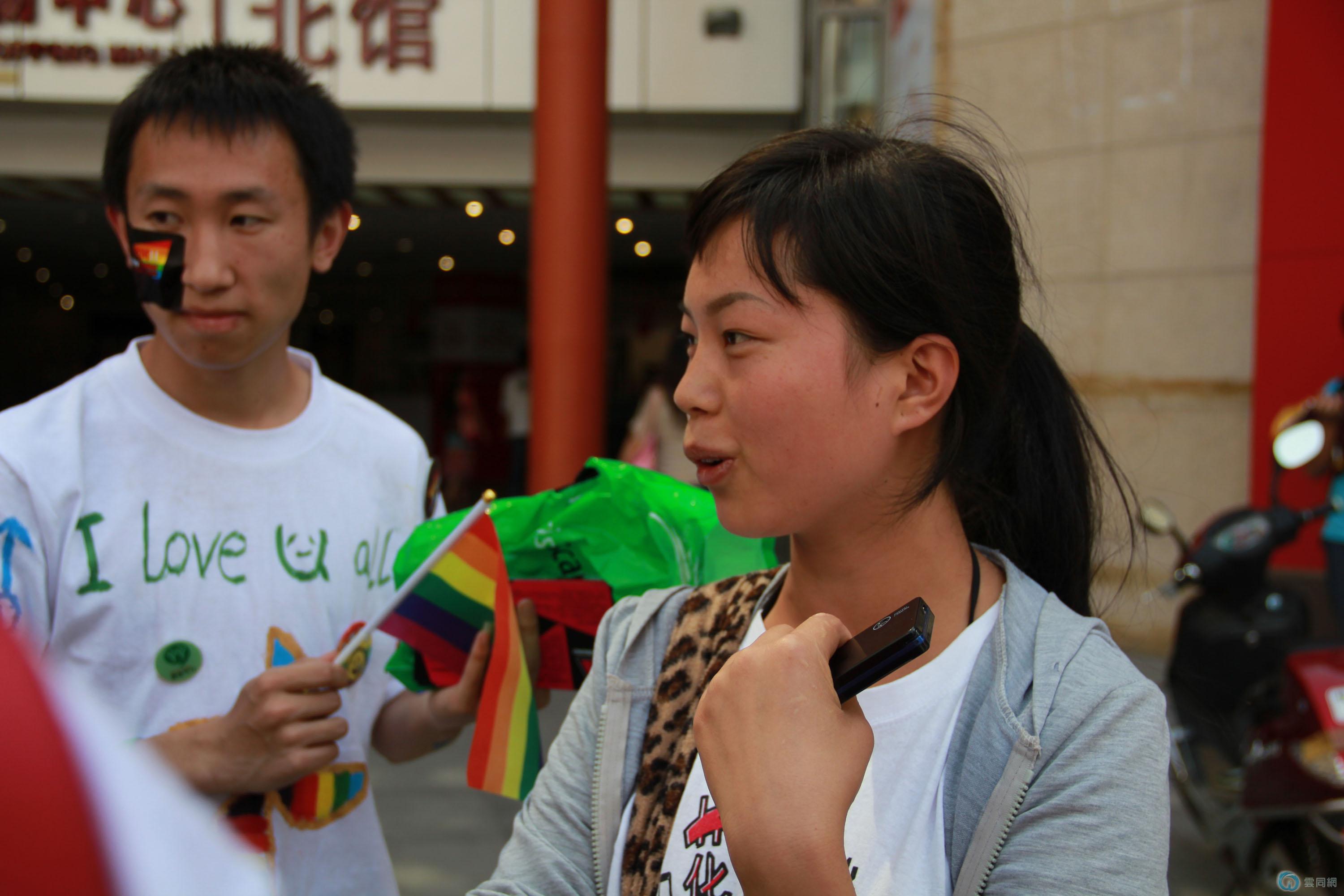 要进入陆军讲武堂的两位女士在接受我们的采访时非常的坦率,直接告诉我们,同性恋是正常的现象,社会不应该对此加以歧视,仅只是性取向不同并不意味着他人就可以对同性恋指手画脚。这让很多初次参与活动的朋友非常振奋,其中一位女士还说,我支持同志!↓