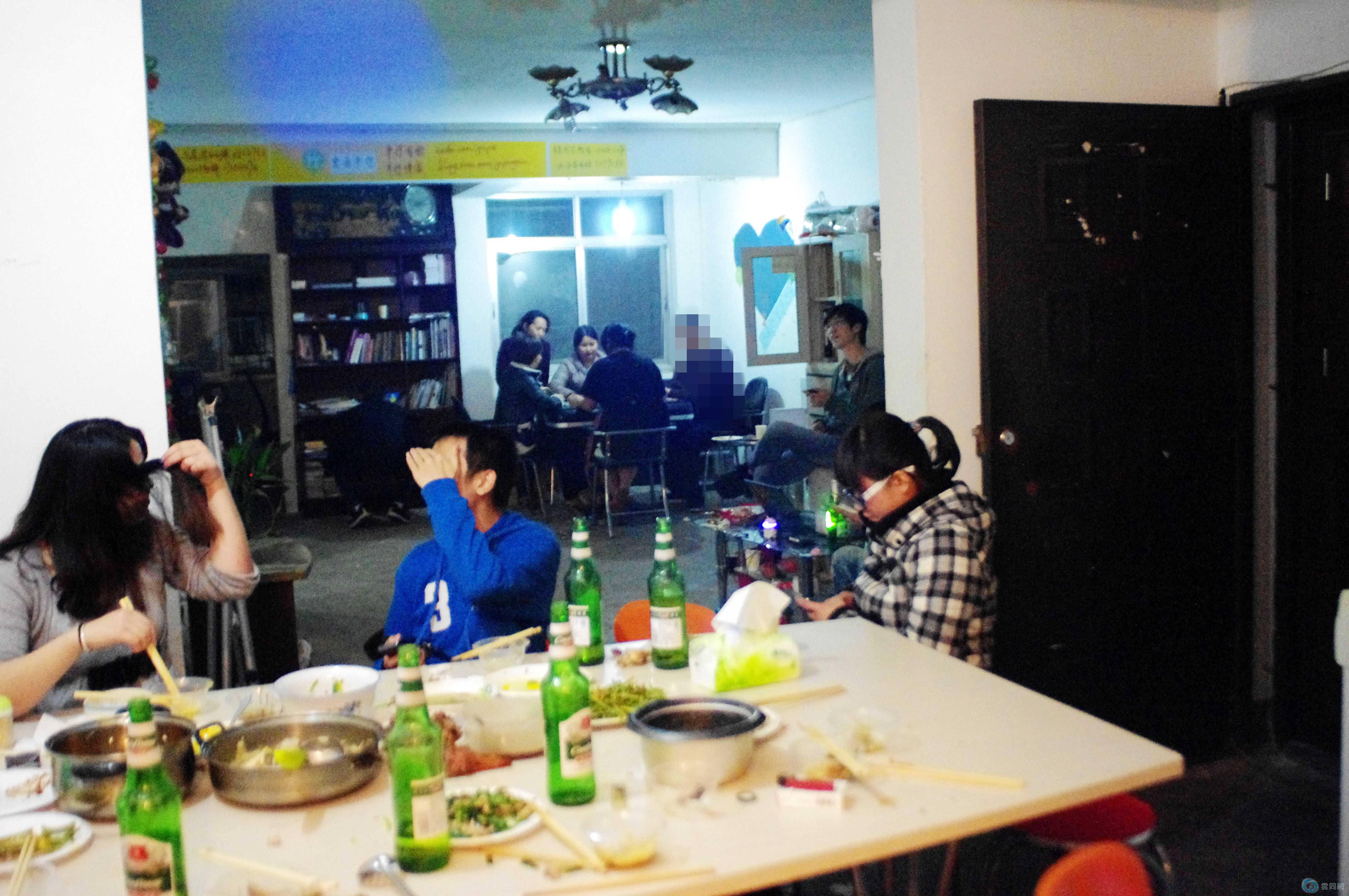 同志们一阵胡吃海喝之后 多淡定地就分桌坐 各玩各的克了 比如 麻将一桌 桌游一桌 苦逼春晚一桌~~