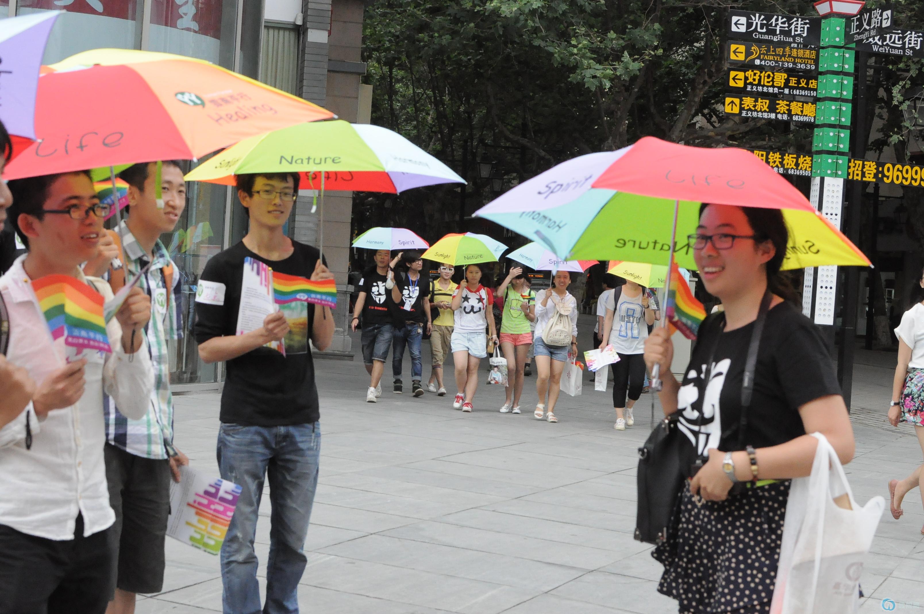 很HIGH的第二组噶~~彩虹伞与彩虹旗交相辉映