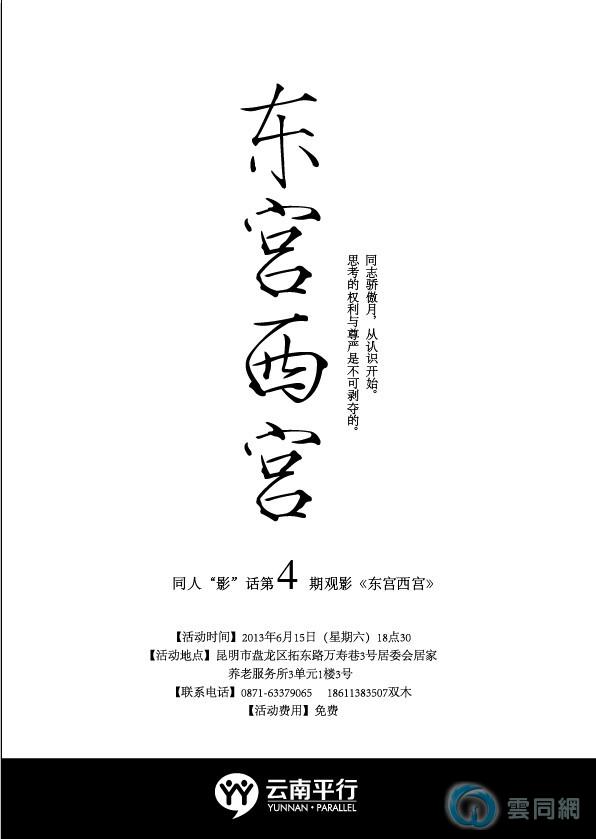 云南平行2007年10月成立,是立足云南性少数人群社区的公益性非政府组织,现在主要从公共卫生和LGBT文化两个角度服务同志和性工作者群体。以“平性工作权,共志同者行”为理念,致力为服务对象增强社会功能,改善生存环境,推动社会更加多元和接纳。