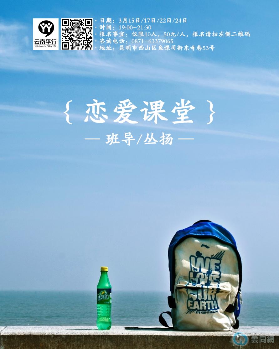 【上课细则】“恋爱课堂”是一次针对“自身探索、恋爱技巧及如何解决恋爱中产生的问题”而开设的课程,分四次进行,分别于本月15日(周二)、17日(周四)、22日(周二)、24日(周四)晚间开课。更多活动细节将于报名后详细通知参加者。