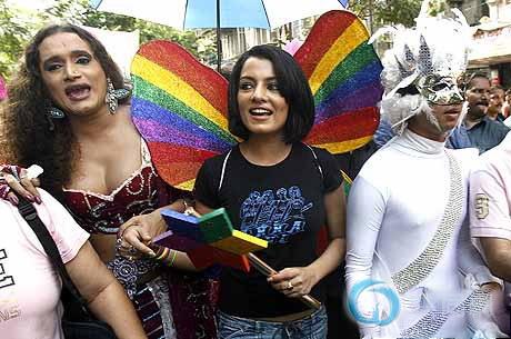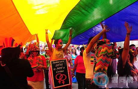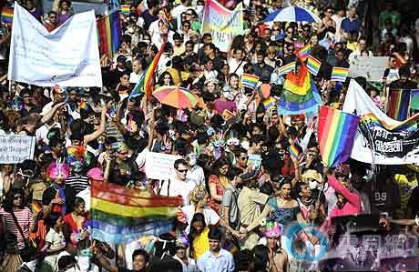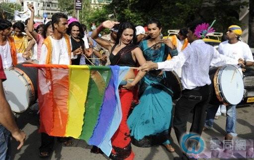 因为印度德里高等法院最近作出了推翻刑法第377条款的裁决,星期天在孟买的同性恋者游行充满欢庆气氛。参加游行的许多同性恋者和前来支持的异性恋者在孟买南部的主要街道上载歌载舞,六色彩虹旗在游行队伍中随处可见。