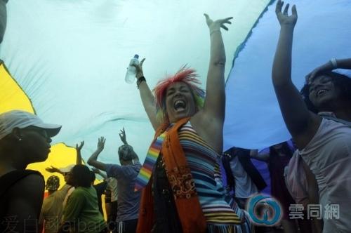 11月1日,一百多万人在巴西里约热内卢市的科帕卡巴纳海滩一带参加了当地第十四届支持同性恋者年度大游行。