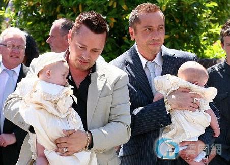 国际在线专稿,据《每日邮报》7月4日报道,英国的一对百万富翁男同性恋通过代孕妈妈,喜得一对双胞胎,并于近日为其两个可爱的宝宝举行了洗礼仪式。