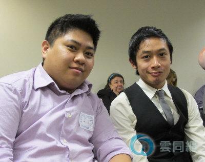 亚太裔艾滋病联盟(APICHA)的项目经理Jarron Magallanes(右)和协调员Charles Solidum出席有关耆老同性恋的公听会。(美国《世界日报》/刘爽 摄)