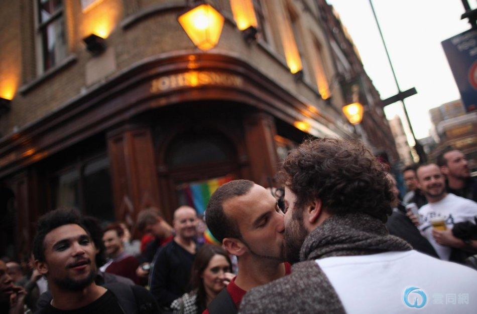 2011年4月15日,英国伦敦的几百名同性恋者当天在一家酒吧外集体接吻,抗议该酒吧歧视驱逐同性恋者。