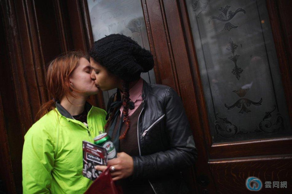 伦敦同性恋街头上演“集体接吻” 抗议酒吧歧视