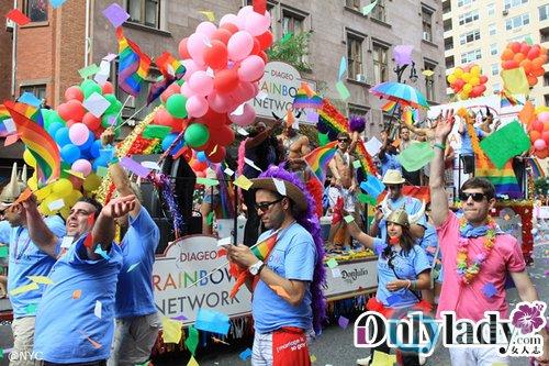 当地时间6月26日,纽约举办规模空前的年度同性恋大游行活动,主办方预计当天参加和观看游行的人数高达50万人。纽约州最近通过了同性恋婚姻合法化法案,很多人在大游行中热烈庆祝这一事件。