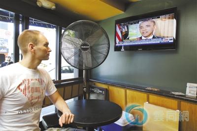 5月9日,美国华盛顿,同性恋者皮尔普斯收看奥巴马接受美国广播公司采访的电视转播。奥巴马表示支持同性婚姻,让同性恋者欢欣鼓舞。