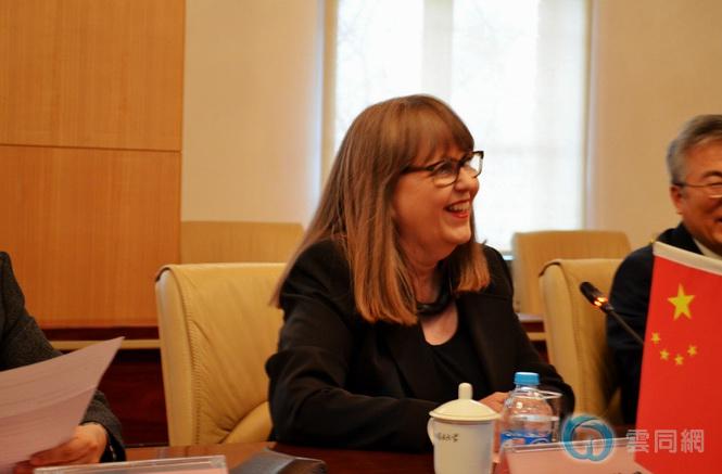 直至16日,网名“攻本有希”的北京外国语大学学生,在微博发布照片,透露莱兹多蒂15日参观该校,欢迎牌上以中冰两语,称她为“冰岛总理夫人、约尼娜‧莱兹多蒂女士”。图为冰岛女总理夫人莱兹多蒂。