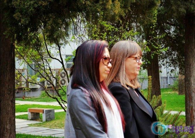公开承认同性恋的冰岛女总理,15日日正式展开访华行程,先后会见了总理李克强和国家主席习近平。她前天和李克强会谈时,特别表示“感谢中方给予我和我夫人的友好对待。”冰岛女总理西于尔扎多蒂的夫人约尼娜‧莱兹多蒂,终于亮相,她于4月15日在北京外国语大学和中国学生交流。图为冰岛女总理夫人莱兹多蒂在北外校园里。