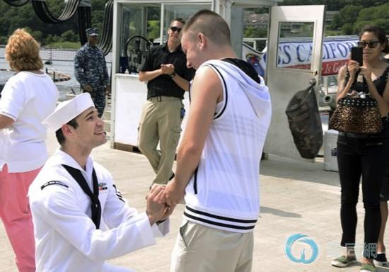 据英国《每日邮报》8月13日报道,美国士兵雷维尔(Jerrel Revels)在完成半年的航行任务后,在码头单膝跪地成功向其同性恋人求婚,整个场面温馨而浪漫。