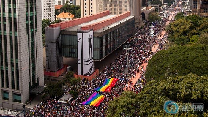 巴西圣保罗第19届同志大游行7日隆重举行,约200多万同性恋、双性恋、跨性别(LGBT)社区成员及其支持者走上街头,参加这个举世闻名的骄傲活动。