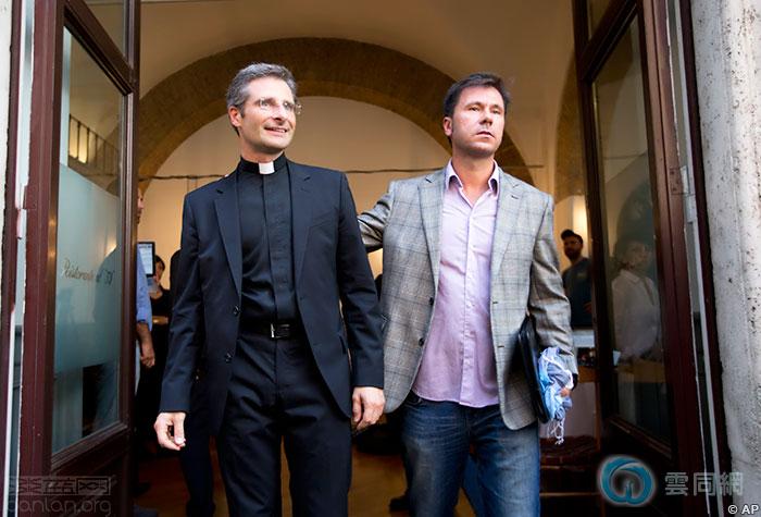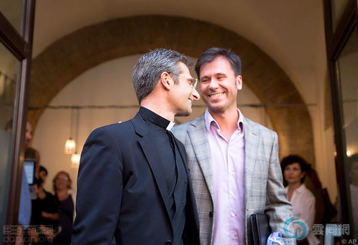 10月3日,罗马,神父查拉姆萨(左)和男友爱德华