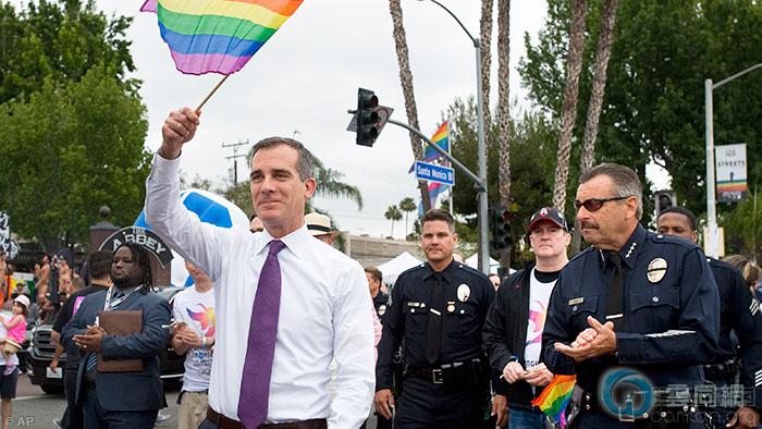 洛杉矶市长埃里克·加西蒂参加骄傲巡游