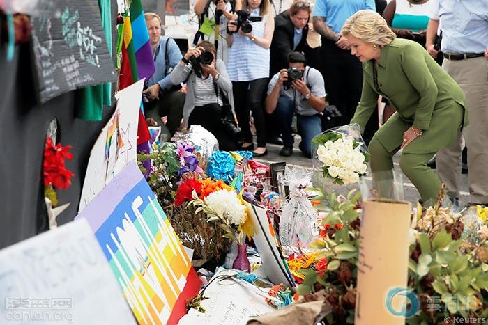 7月22日,希拉里·克林顿在Pulse夜总会前献花