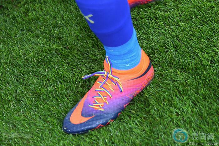莱斯特城球员Jamie Vardy系上了彩虹鞋带
