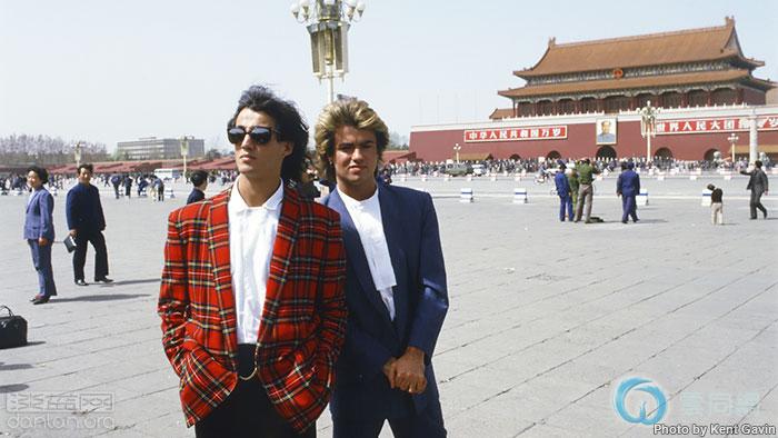 1985年,威猛乐队在北京,右为乔治·迈克尔